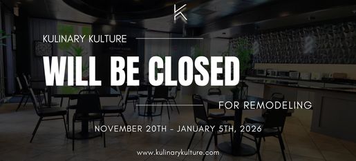 We’re taking a short break to bring you an even better dining experience. Kulinary Kulture will be closed for remodeling from Nov 20th – Jan 5th. See you soon!